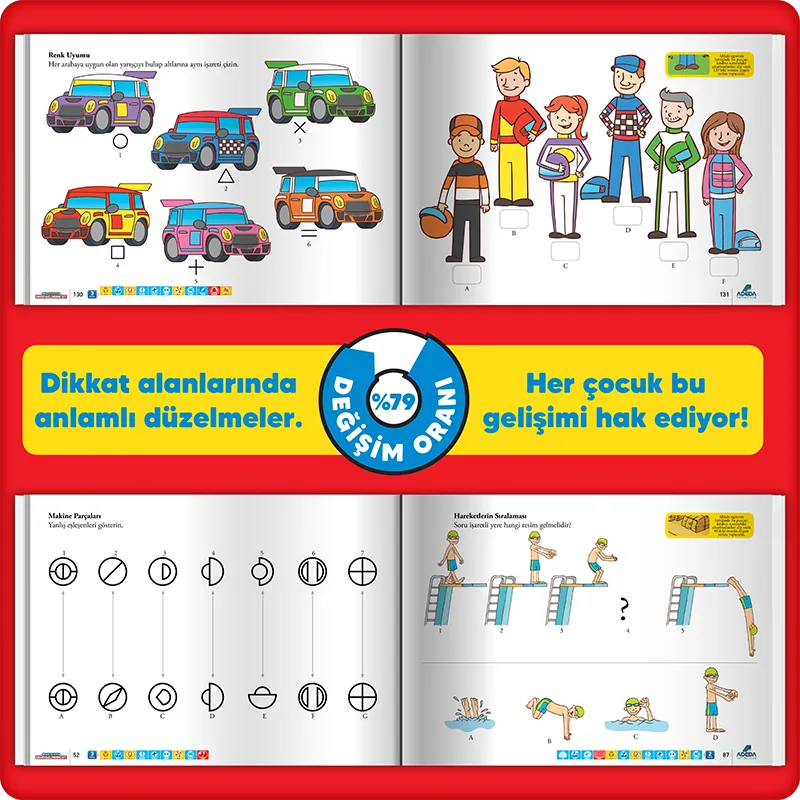 · Dikkati güçlendiren egzersizler çocuğun yaşına uygun olarak hazırlanmıştır.