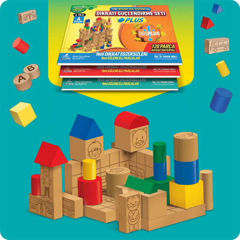 Dikkati Güçlendirme Seti Plus içerisinde yer alan egzersizler ile beyindeki 27 farklı algı merkezini harekete geçirerek çocuklardaki dikkatin devamlılığını sağlayan, odaklanmayı artıran, öğrenme güçlüğünün giderilmesine yardımcı olan bir eserdir.